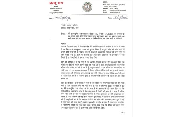 श्री राय ने कहा कि सरकार का उत्तर गलत है। जहां तक उनकी जानकारी है, एफएसएल की रिपोर्ट 8 माह पहले ही आ चुकी है। यह रिपोर्ट संबंधित विद्वान न्यायाधीश के कोर्ट में है। एफएसएल वालों ने जमशेदपुर पुलिस से कहा कि वे जांच रिपोर्ट ले जाएं लेकिन पुलिस ने वह रिपोर्ट नहीं ली है।
