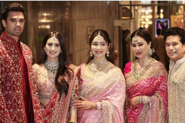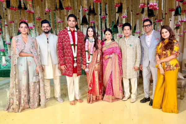 शादी के दौरान पिता Sachin Tendulkar और मां अंजलि तेंदुलकर भी मौजूद रहे। समारोह के दौरान सचिन तेंदुलकर ने नवविवाहित जोड़े को आशीर्वाद दिया और खुशी के इस पल को परिवार के साथ सेलिब्रेट किया।