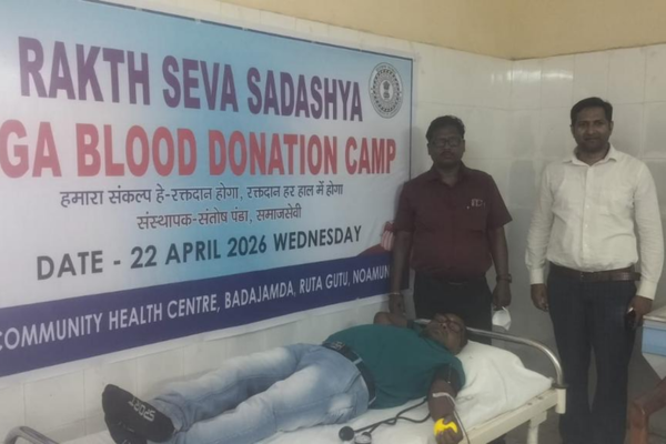 सोशल संवाद / डेस्क : झारखंड के पश्चिम सिंहभूम जिले के नोवामुंडी प्रखंड स्थित बड़ाजमादा सीएससी में बुधवार, 22 अप्रैल 2026 को एक दिवसीय रक्तदान शिविर का सफल आयोजन किया गया। इस शिविर का आयोजन स्वास्थ्य विभाग द्वारा रक्त सेवा सदाश्य संस्थान के सहयोग से किया गया, जिसमें स्थानीय लोगों की उत्साहपूर्ण भागीदारी देखने को मिली।