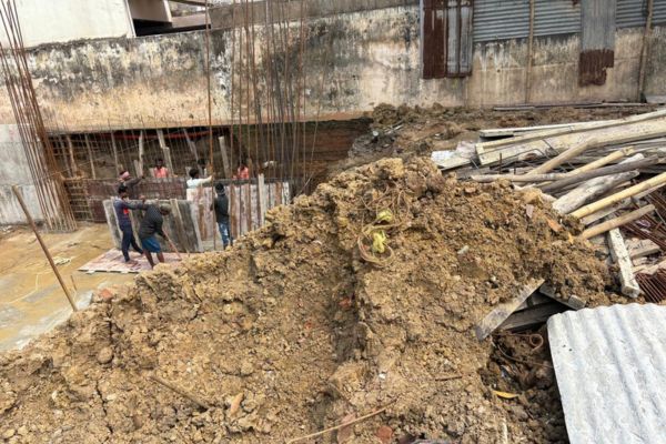सोशल संवाद / जमशेदपुर : यह जगह न्यू बाराद्वारी के holding number 164 की है। बिल्डर की लापरवाही देखें । बगल वाला घर डॉक्टर अंजु बिजुरिया का है।