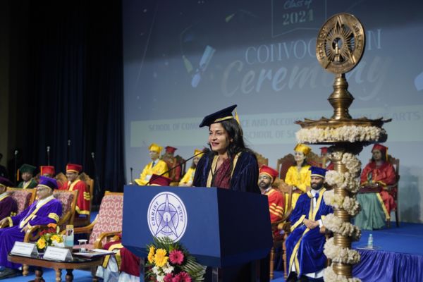 विश्वविद्यालय के कुलपति डॉ. फादर जोसेफ सी.सी. ने इन भावनाओं को दोहराया और स्नातकों से अपने पेशेवर सफर के स्तंभ के रूप में नवाचार और स्थिरता को अपनाने का आग्रह किया। मुख्य अतिथि अंजना ओम कश्यप ने शिक्षा के लिए विश्वविद्यालय के समग्र दृष्टिकोण की सराहना की और वैश्विक चुनौतियों के लिए सुसज्जित अच्छे व्यक्तित्व वाले व्यक्तियों के पोषण पर इसके प्रभाव पर प्रकाश डाला। डॉ. राजेश एस गोखले ने सामाजिक प्रगति के लिए ज्ञान का लाभ उठाने के महत्व को रेखांकित किया और स्नातकों से समाज के लाभ के लिए अपनी क्षमता का उपयोग करने का आग्रह किया।