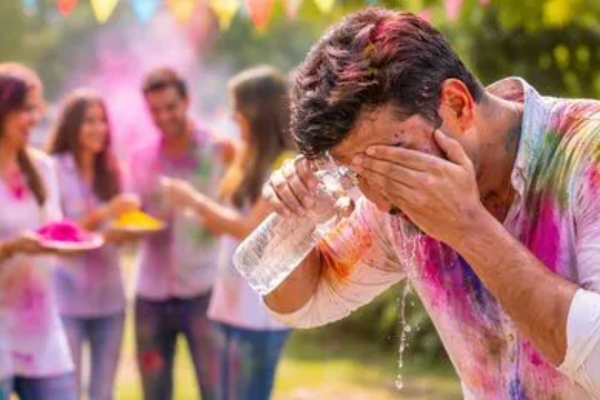 अगर रंग आंख में चला जाए तो तुरंत साफ और ठंडे पानी से आंखों को धो लें। लगातार 10–15 मिनट तक पानी से फ्लश करना बेहतर होता है।