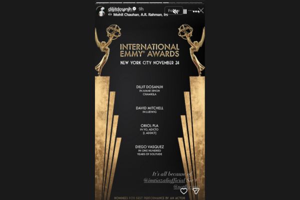 नॉमिनेशन की खबर सुनकर Diljit Dosanjh ने अपने इंस्टाग्राम स्टोरी पर खुशी जाहिर की। उन्होंने अमर सिंह चमकीला के डायरेक्टर इम्तियाज अली को धन्यवाद देते हुए लिखा–
