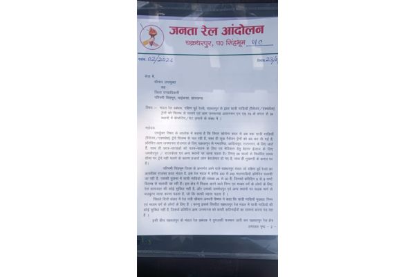 सोशल संवाद/डेस्क: चाईबासा और आसपास के क्षेत्रों में रेल सुविधाओं की मांग को लेकर जनता रेल आंदोलन की टीम एक बार फिर सक्रिय हो गई है। टीम के सदस्यों ने एसडीओ को मांग पत्र सौंपते हुए क्षेत्र में रेल सेवाओं में सुधार की मांग उठाई।