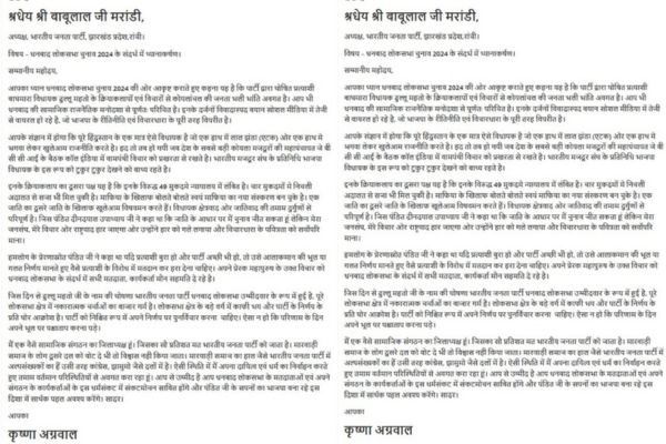 28 मार्च को मारवाड़ी समाज से जुड़े कृष्णा अग्रवाल ने एक पत्र भाजपा के प्रदेश अध्यक्ष बाबूलाल मरांडी को लिखा है। इस पत्र में दो टूक मांग की गई है कि अविलंब ढुल्लू महतो की उम्मीदवारी निरस्त की जाए और कोई दूसरा कैंडिडेट यहां से दिया जाए। आपको बता दें कि कृष्णा अग्रवाल घोर भाजपाई हैं और अपने पत्र में उन्होंने बड़ी खूबसूरती से इसका जिक्र भी किया है। वह धनबाद जिला मारवाड़ी सम्मेलन के अध्यक्ष हैं और दावा करते हैं कि अगर ढुल्लू महतो का टिकट निरस्त नहीं किया गया तो परिणाम के दिन कहीं भाजपा को पश्चाताप न करना पड़े।