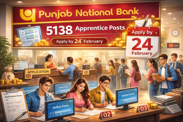 PNB Apprentice Recruitment 2026 बैंकिंग सेक्टर में करियर की शुरुआत करने का बेहतरीन मौका है। 5138 पदों पर भर्ती के इस अभियान में योग्य उम्मीदवार समय रहते आवेदन कर लें। अंतिम तिथि 24 फरवरी 2026 है, इसलिए देरी न करें।