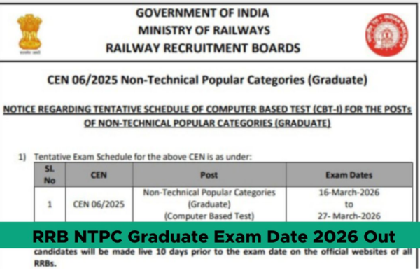 RRB NTPC 2025-26 Exam Date Out: ग्रेजुएट लेवल CBT 1 परीक्षा 16 से 27 मार्च तक