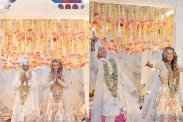 शादी समारोह में Shikhar Dhawan क्रीम रंग की शेरवानी में बेहद शानदार नजर आए, जबकि सोफी शाइन पारंपरिक लहंगे में बेहद खूबसूरत दिखीं। दोनों के वेडिंग आउटफिट्स मशहूर फैशन डिजाइनर मनीष मल्होत्रा द्वारा डिजाइन किए गए थे।