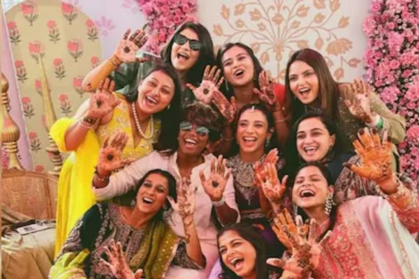 जहां पलाश ने आइवरी सिल्क का कुर्ता-पायजामा सेट पहना था, वहीं स्मृति ने इस मौके पर एक खूबसूरत, स्टेटमेंट साड़ी पहनी थी। जल्द ही शादी करने वाले इस कपल ने सेरेमनी के दौरान अपने प्रियजनों के साथ पोज़ दिया, और अपनी मेहंदी डिज़ाइन भी दिखाईं। आइए देखते हैं कि उन्होंने क्या पहना था।