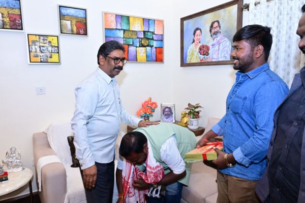 सोशल संवाद/डेस्क: चक्रधरपुर नगर परिषद के नव निर्वाचित अध्यक्ष सन्नी उरांव ने चुनाव में जीत के बाद राज्य के मुख्यमंत्री हेमंत सोरेन से मुलाकात कर उनका आशीर्वाद प्राप्त किया। इस दौरान विधायक कल्पना मुरमू सोरेन भी मौजूद रहीं।