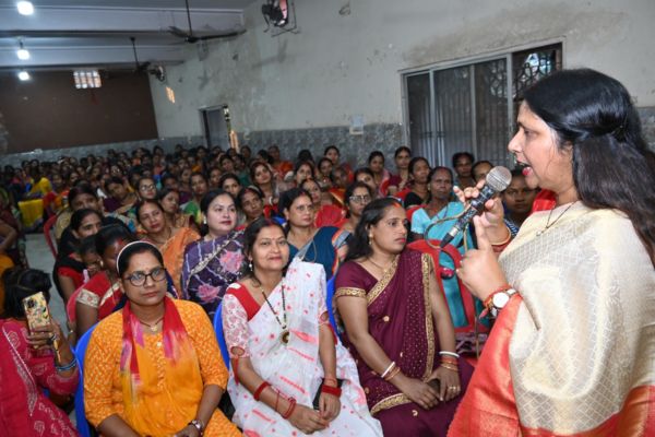 समूह की बहनों द्वारा “इतनी शक्ति हमें देना दाता मन का विश्वास कमजोर हो ना” गाने द्वारा सभी महिलाओं को प्रेरित किया गया।