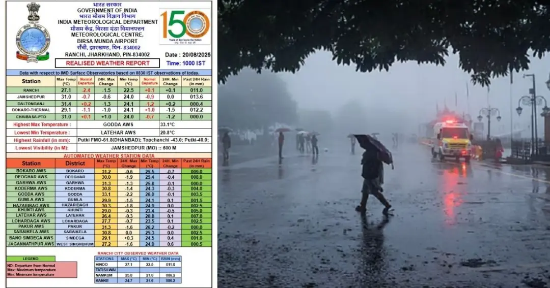 झारखंड में बदलेगा मौसम, झमाझम बारिश से मिलेगी गर्मी से राहत