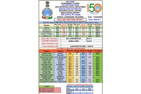 अगले दो दिनों में तापमान 40 डिग्री के पार जाने के संकेत हैं, जिससे लू जैसी स्थिति बन सकती है। दोपहर में सीधे धूप से बचने की सलाह दी गई है। भीषण गर्मी के बीच टाटा स्टील जूलॉजिकल पार्क में वन्यजीवों को स्पेशल केयर में रखा गया है।