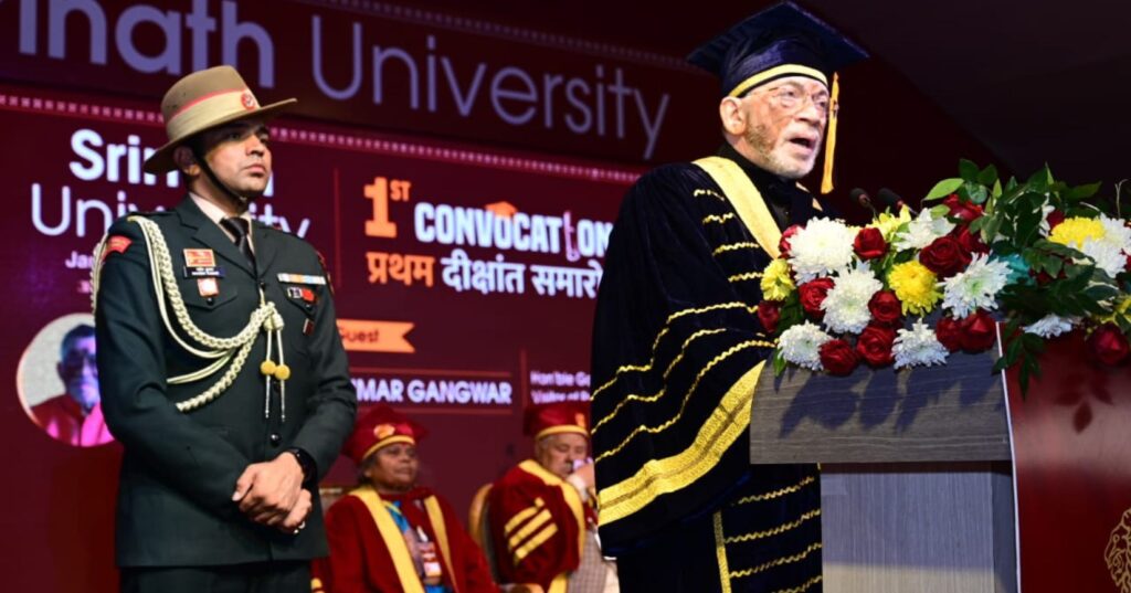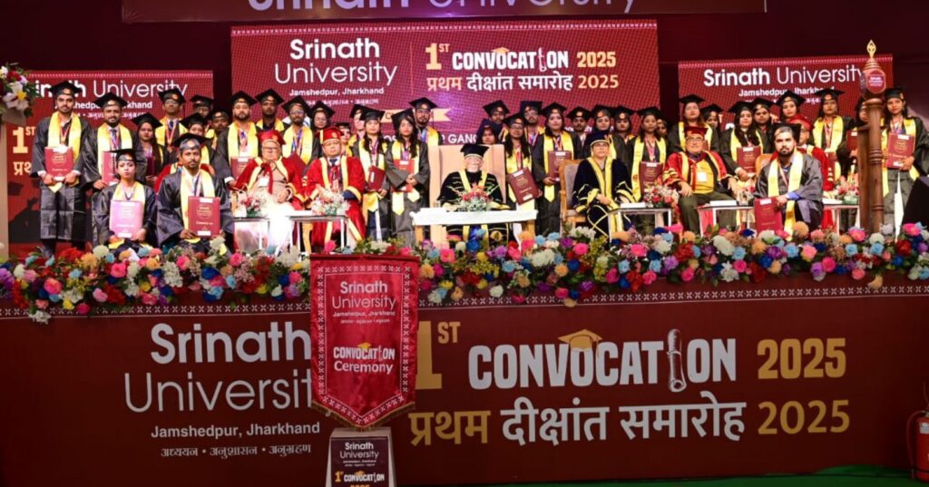 सोशल संवाद / जमशेदपुर : आज दिनांक 24-12-2025 को आदित्यपुर स्थित श्रीनाथ विश्वविद्यालय में विश्वविद्यालय का प्रथम दीक्षांत समारोह मुख्य अतिथि झारखंड के माननीय राज्यपाल संतोष कुमार गंगवार की उपस्थिति में संपन्न हुआ। समारोह का शुभारंभ दीप प्रज्वलन के साथ हुआ। इसके उपरांत श्रीनाथ विश्वविद्यालय का कुलगीत गाया गया । समारोह के मुख्य अतिथि माननीय राज्यपाल संतोष कुमार गंगवार जी ने अपने संबोधन में कहा कि यह अवसर केवल विश्वविद्यालय के लिए ही नहीं बल्कि शिक्षकों और अभिभावकों के लिए भी गर्व और उपलब्धि का समय है उन्होंने विद्यार्थियों से कहा कि आज से आपकी नई यात्रा आरंभ हो रही है।